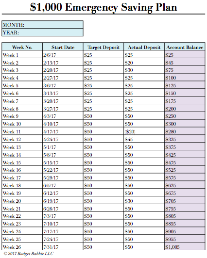 Here’s an example of our savings template you can use to set your target savings amounts and track your progress:
